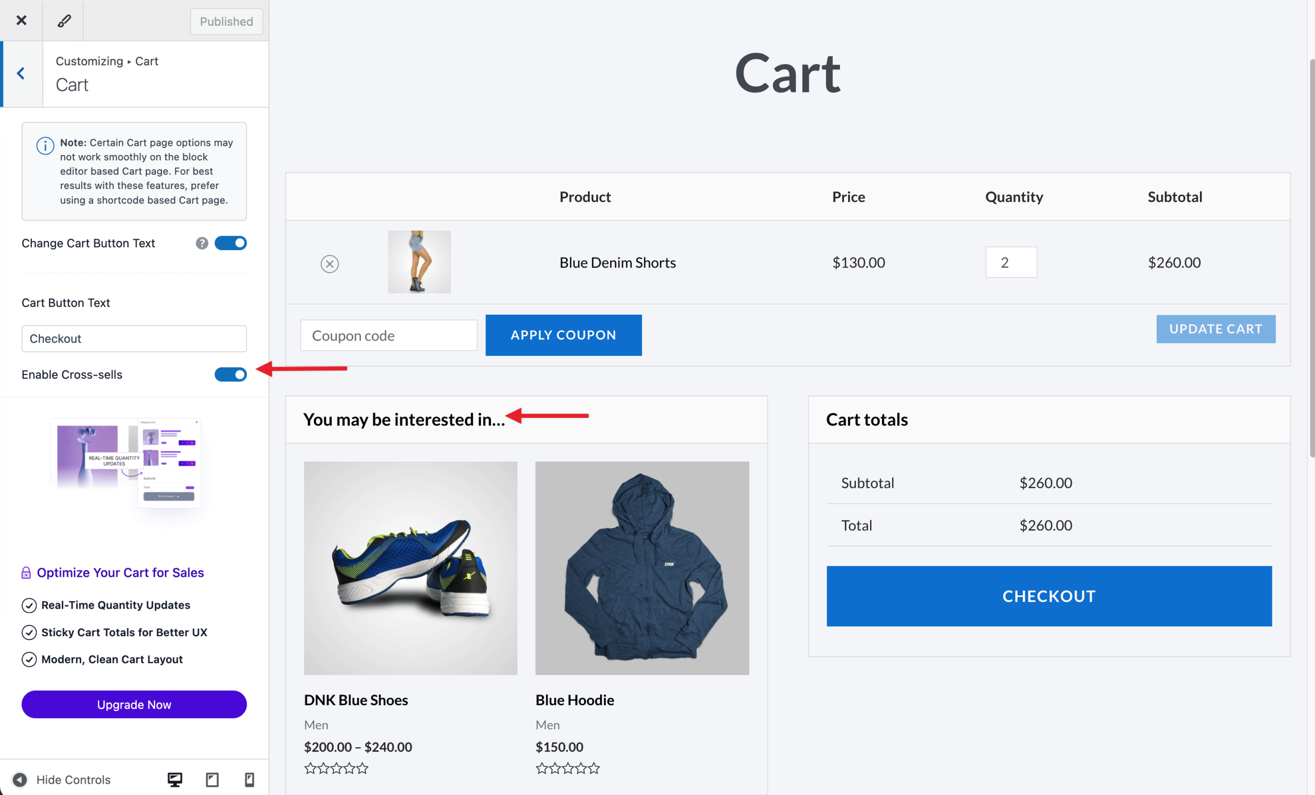 Should you wish to display cross-sell products, you can enable the “Enable Cross-sells” checkbox.