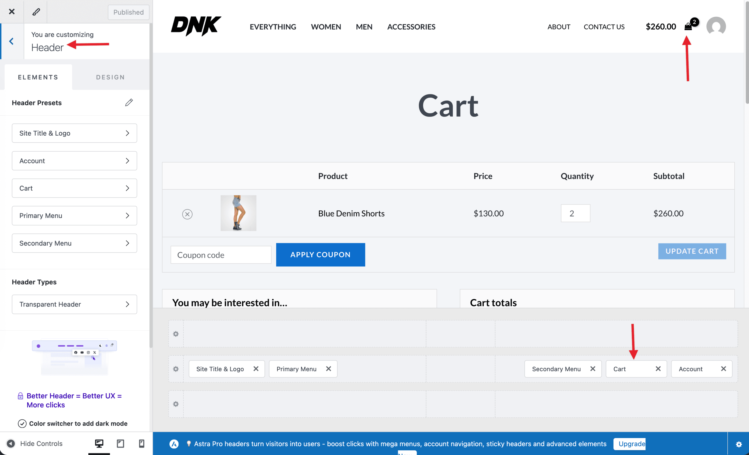 Astra offers a variety of customization options for your WooCommerce cart page, allowing you to tailor its appearance and functionality to better suit your online store. These settings are easily accessible from the WordPress dashboard.