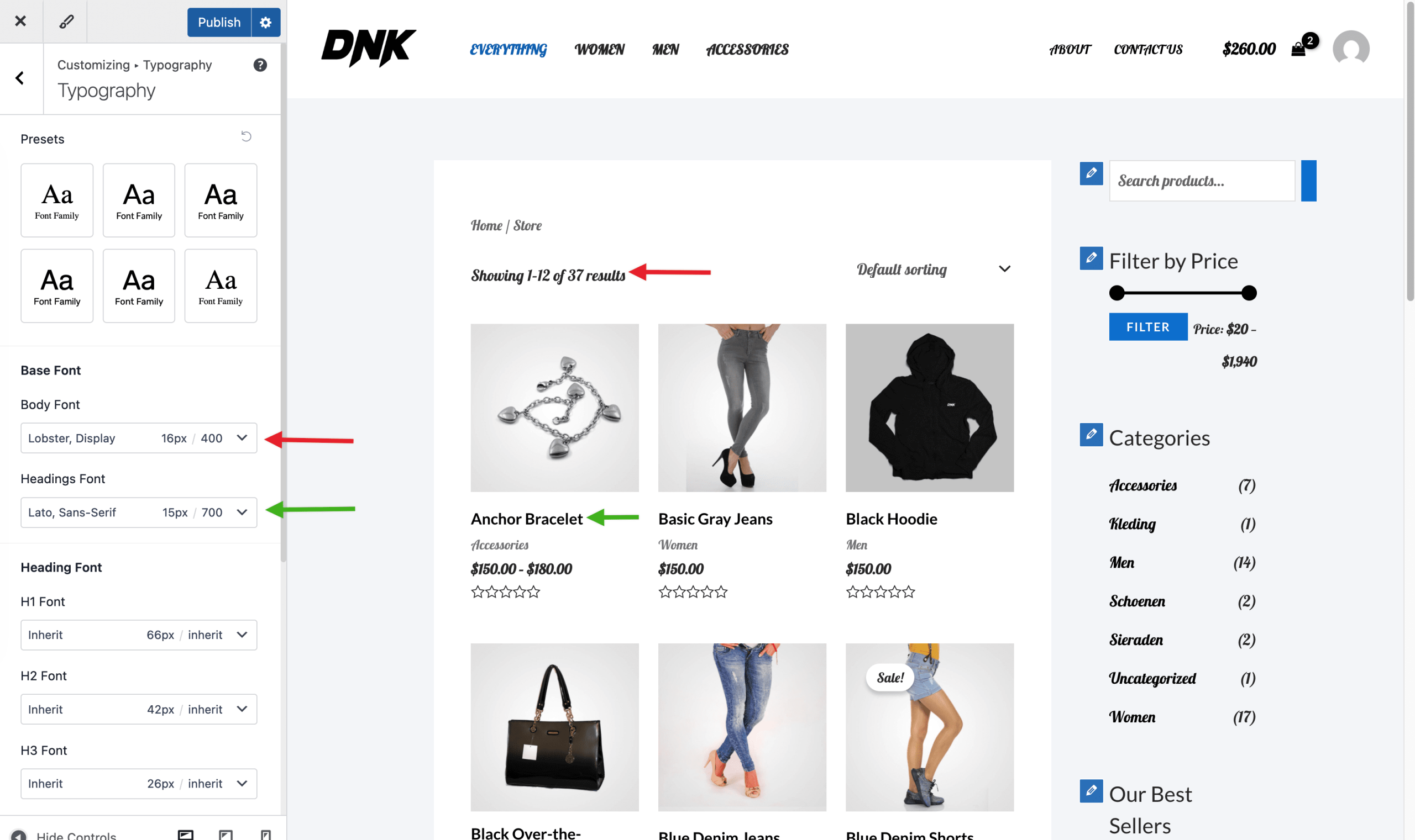 As mentioned at the beginning of the article, all WooCommerce elements automatically adapt with the rest of your Astra-powered website and take colors, fonts out of the box from the theme customizer settings.