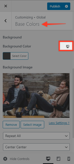 • Improvement (*) from Astra theme and Astra Pro v2.4.0 you will find a responsive option besides the Background option.