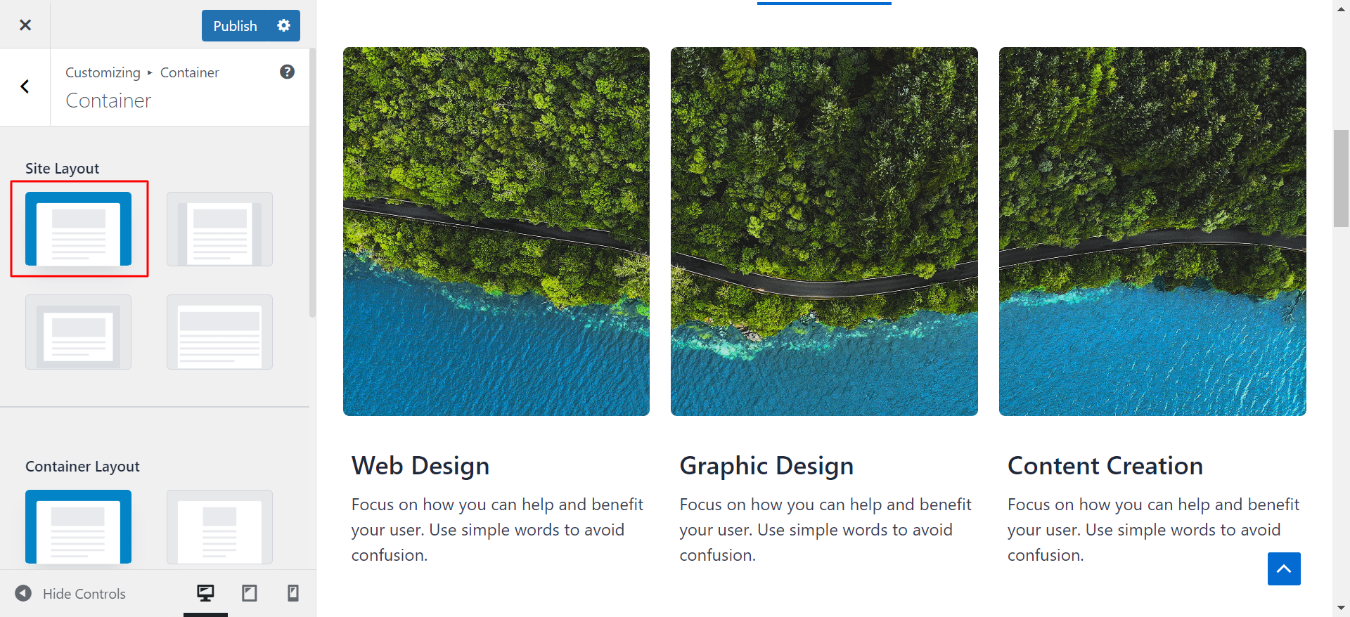6. Preview and Publish: With your settings configured, preview your website to see your stunning full-width layout in action. Once satisfied, hit the publish button.
